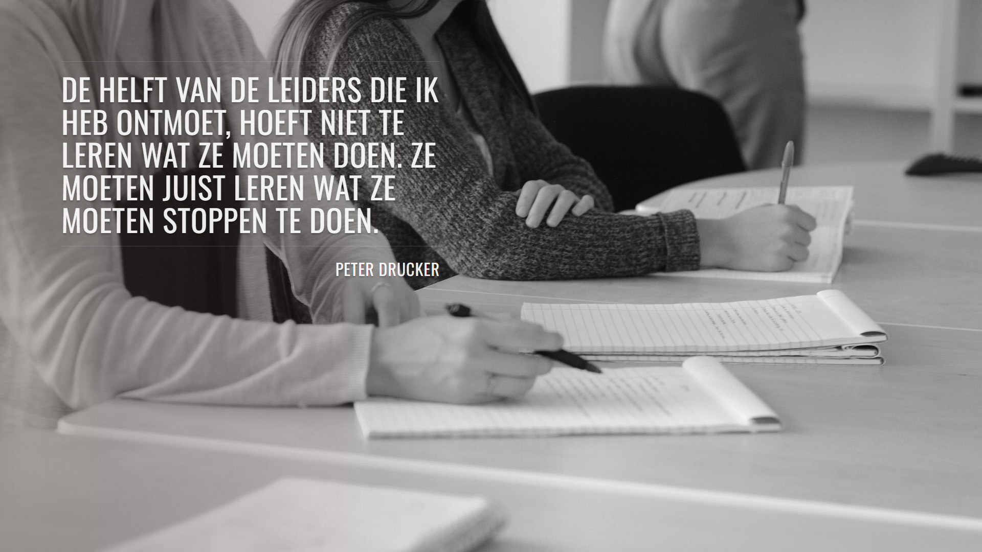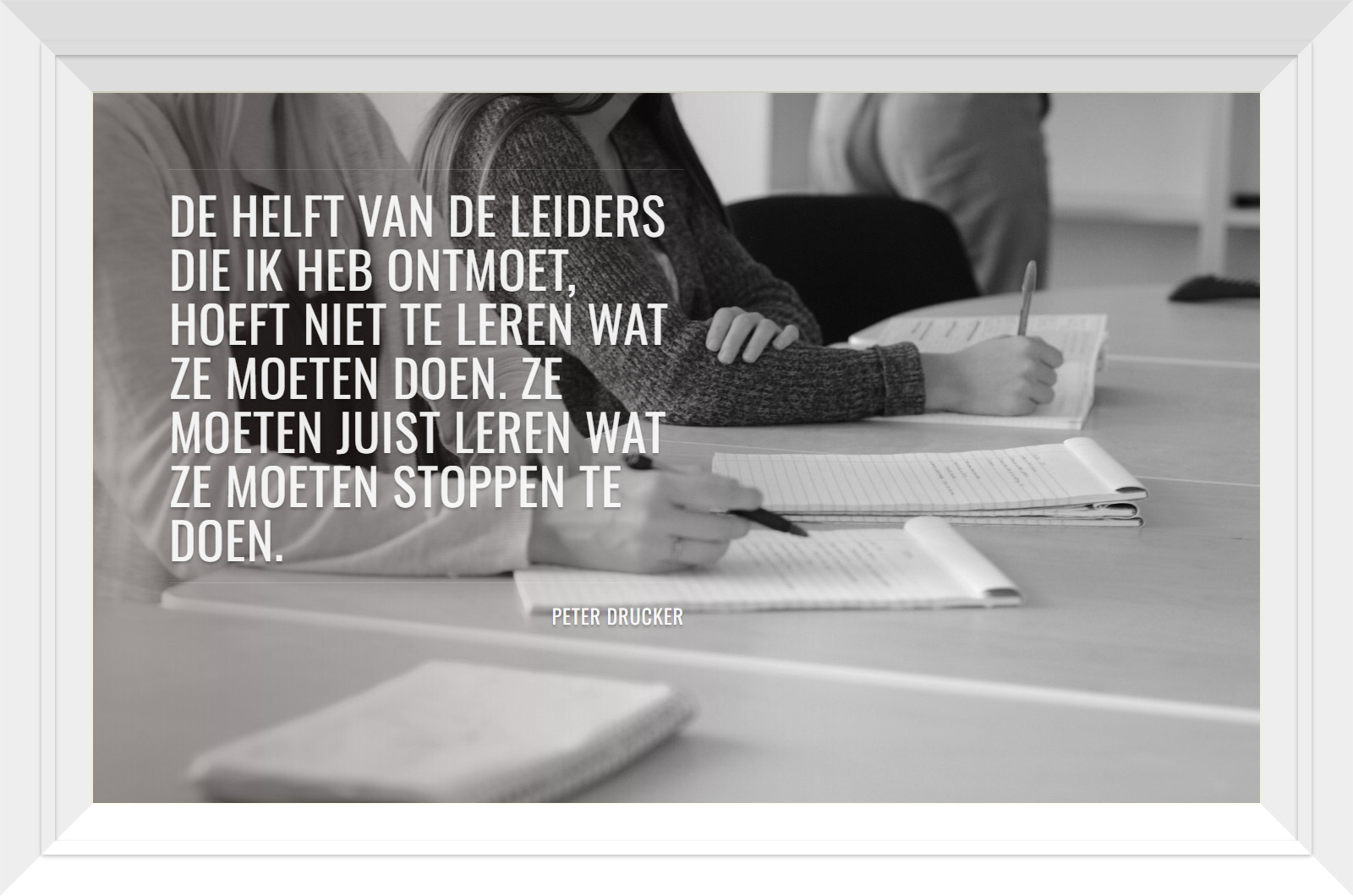 “De helft van de leiders die ik heb ontmoet, hoeft niet te leren wat ze moeten doen. Ze moeten juist leren wat ze moeten stoppen te doen.” - Peter Drucker