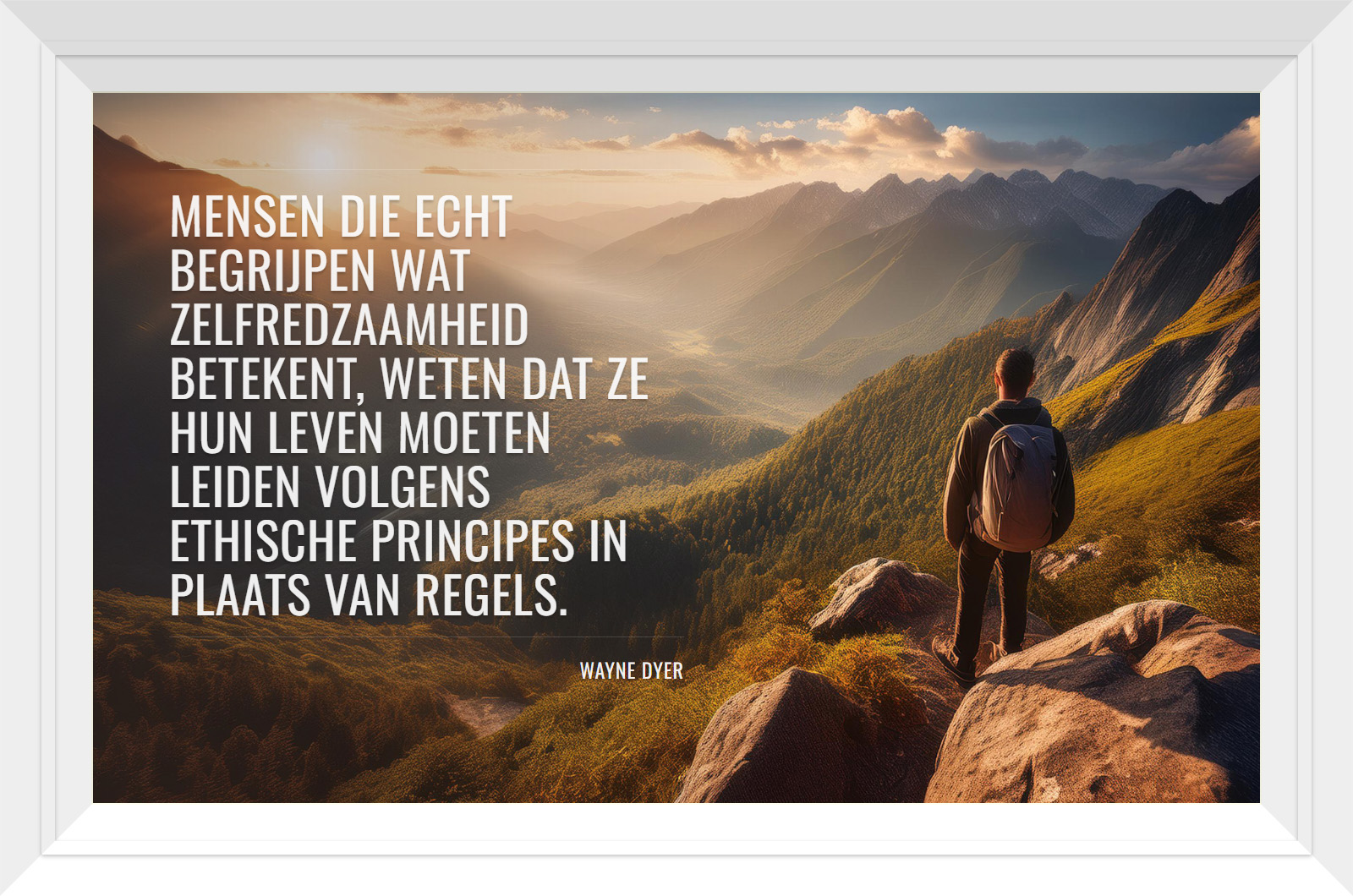 “Mensen die echt begrijpen wat zelfredzaamheid betekent, weten dat ze hun leven moeten leiden volgens ethische principes in plaats van regels.” - Wayne Dyer
